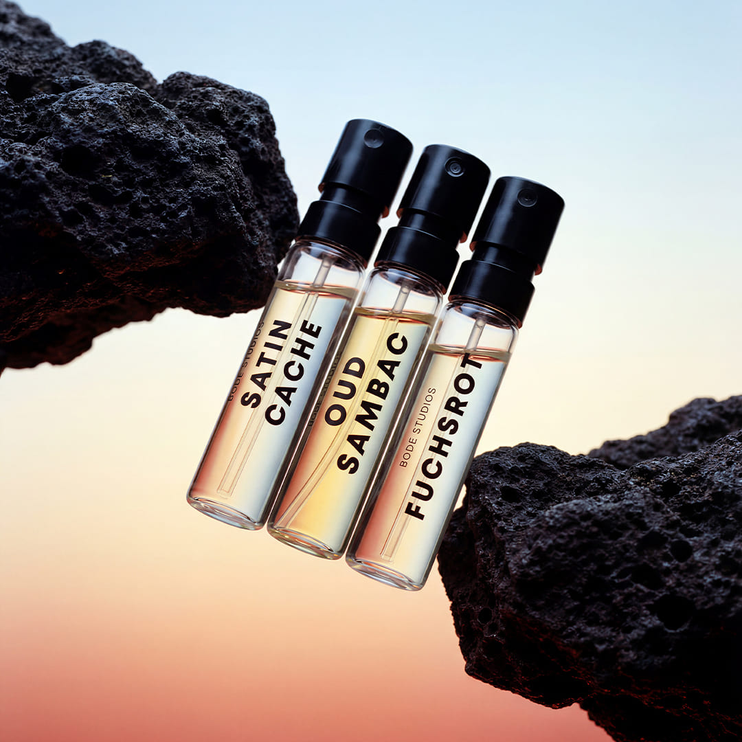 Every fragrance tells its own story: FUCHSROT – wild, bold, and self-assured – is an internationally awarded scent with the energy of green pepper, violet leaf, and fine guaiac wood. SATIN CACHE, silky and elegant, captures calm in motion – a harmonious blend of mandarin, iris, and vetiver. And OUD SAMBAC, sensual and mysterious, combines sweet citrus notes, cedarwood, and precious Indian oud to create an unmistakable depth.